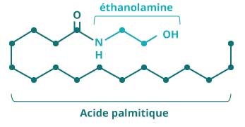 Le PEA résulte de la combinaison d’un acide gras largement répandu dans l’alimentation, l’acide palmitique, avec un groupement éthanolamine.